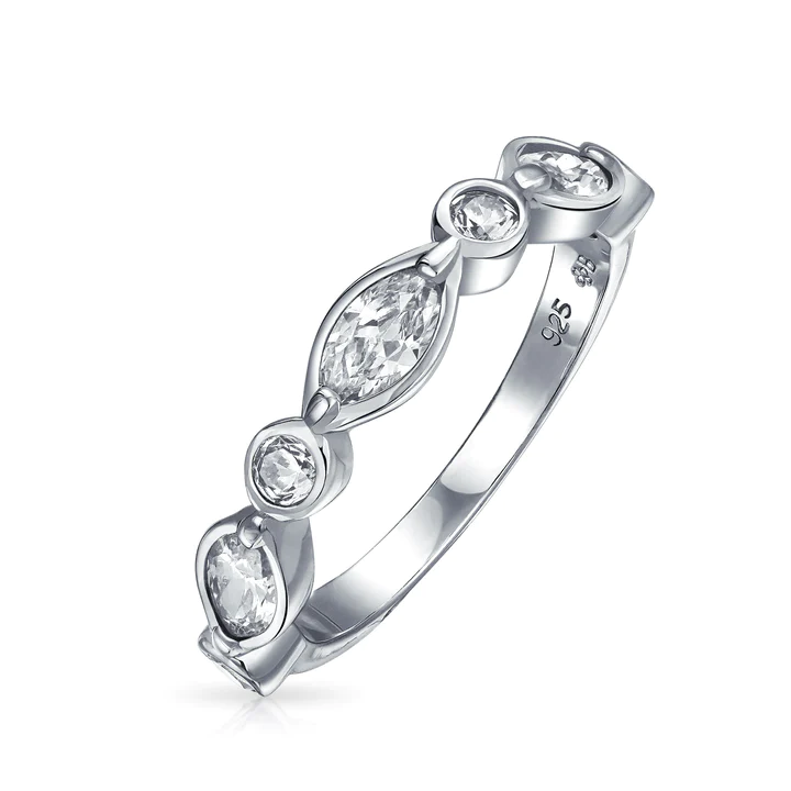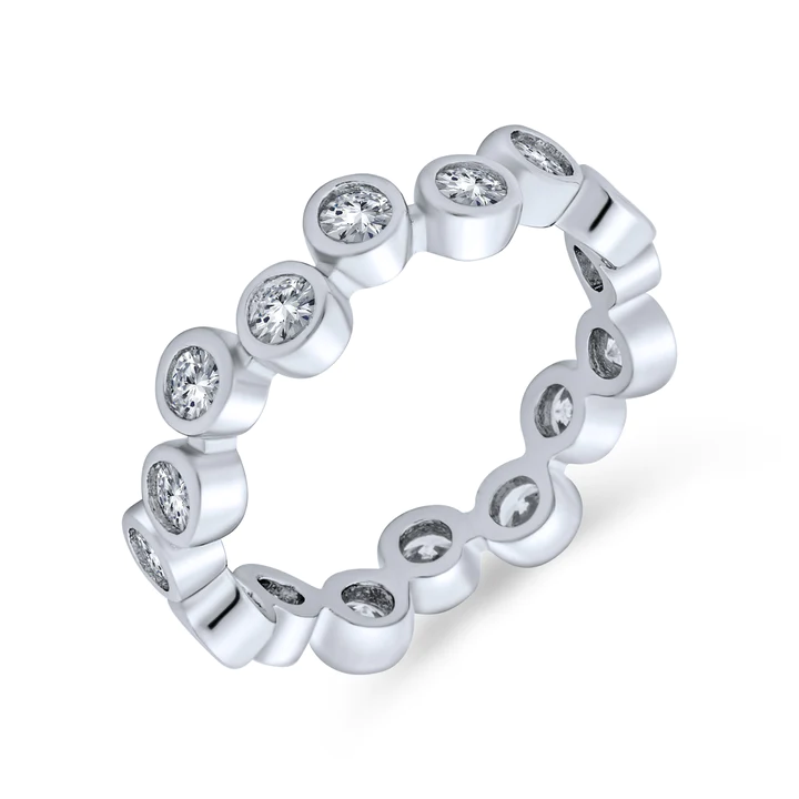 Bejewel your beautiful bride to be with this size 5, bubble ring. Bezel set CZ’s give this ring a unique look and makes all 3mm of the band an engaging and wonderful gift.