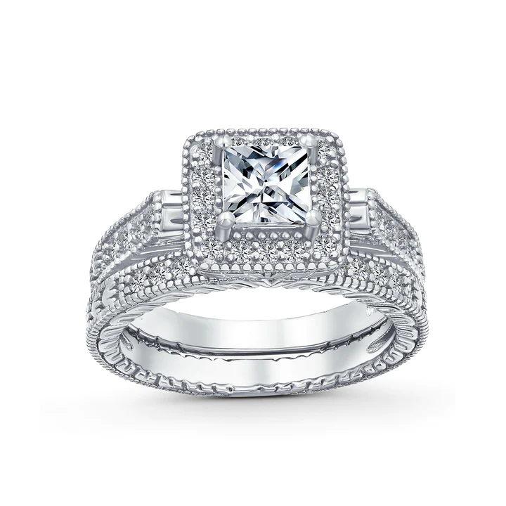 Enchant your beloved fiancé with this gorgeous, vintage style engagement ring. Express your passionate love for your darling bride to be with this magnificent, art deco style engagement ring.
